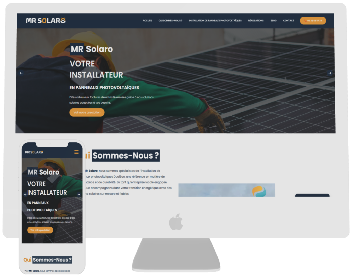 SeedWeb a développé le site de MR Solaro en structurant efficacement ses services pour une présentation claire et intuitive. Grâce à une interface moderne, des sections détaillées par prestation et une navigation optimisée, l'expérience utilisateur est à la fois fluide et engageante.